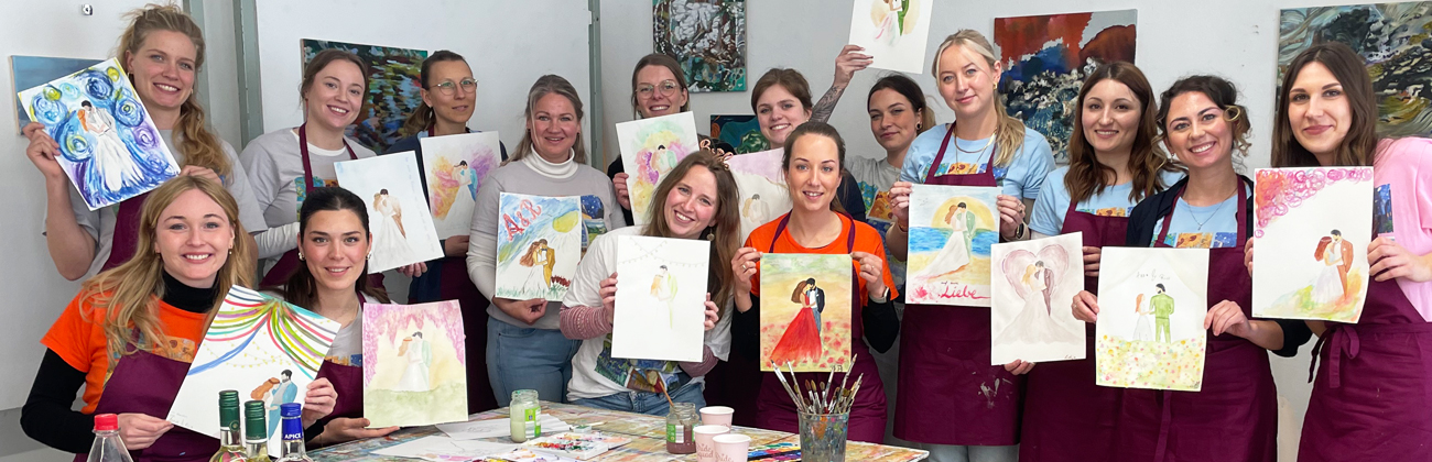 „Ein wunderbarer JGA-Workshop! Wir haben gemeinsam tolle Bilder gemalt und dabei so viel Spaß gehabt. Es war nicht nur eine kreative Herausforderung, sondern auch eine Gelegenheit, tolle Erinnerungen zu schaffen. Ich würde es auf jeden Fall empfehlen!“